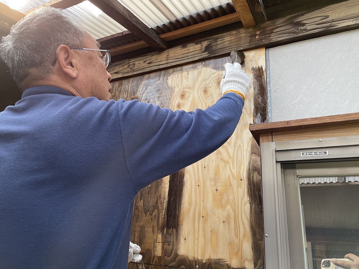 こんにちは!山田塗装店スタッフです(^_^)今日は補修工事を行った箇所に、社長と一緒に塗装をしてきました!こちらの塗料はキシラデコールと言いまして、気が腐ったりするのを防ぐ保護塗料になります!!木はそのままだと腐りやすいのでこのように保護塗料を塗装してあげるのが大切です(^○^)!