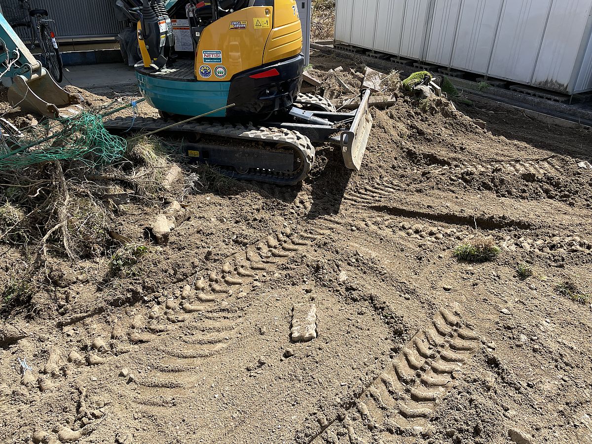 こんにちは!山田塗装店スタッフです!!本日はお庭の砂利引き現場にお邪魔しました~\(^o^)/元々のお庭は草木が生えていたのでショベルカーを使って掘っていきます!!!どんどん土が彫られていきます、、、!本日は下地作りとなるので、後日砂利がひかれます!完了写真はまた後日(^○^)♡