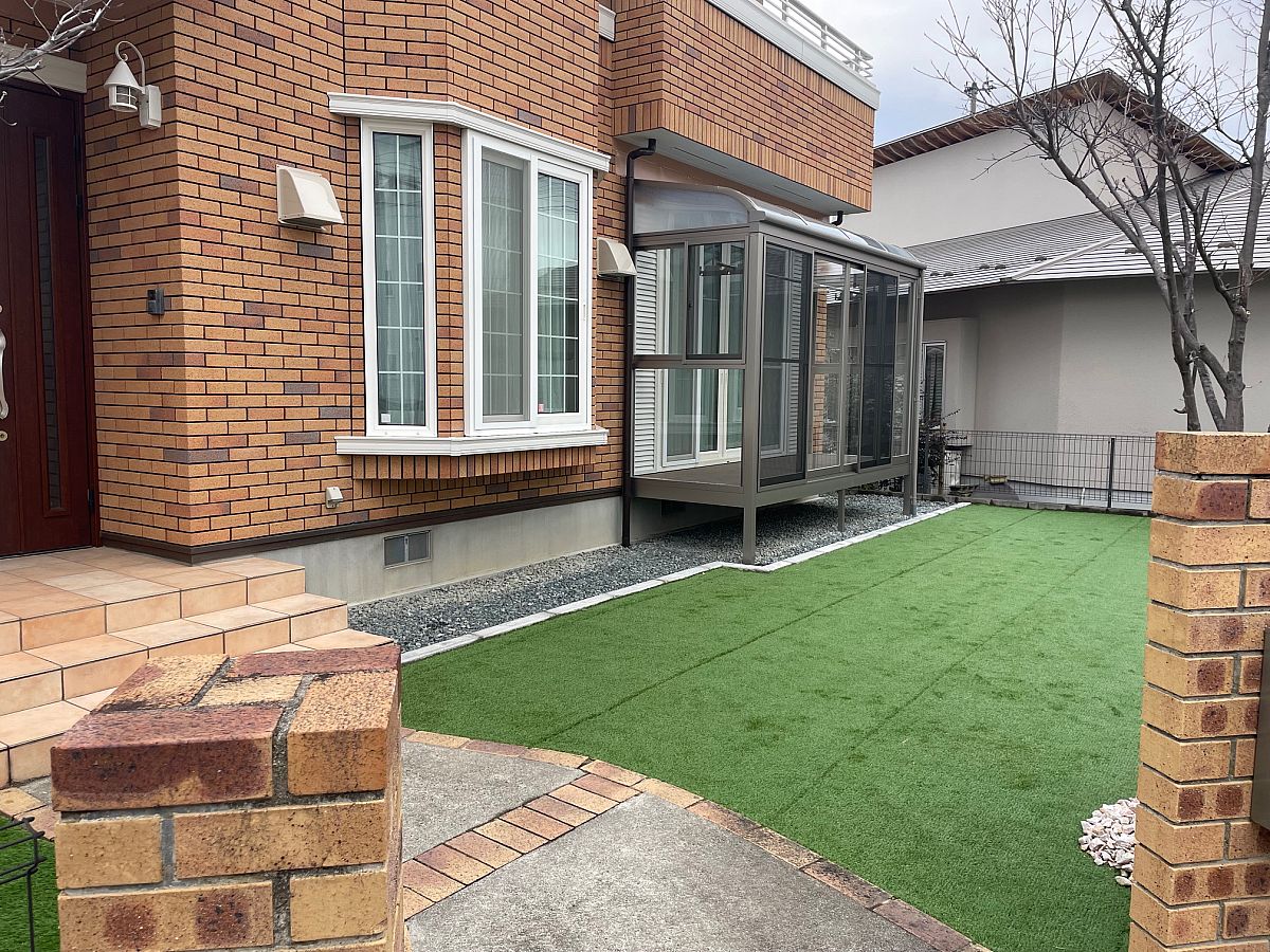 こんにちは!最近も夜はまだまだ冷え込みますね、、、皆さんインフルエンザが流行っているので体調には十分お気をつけて^_^;本日は去年からお庭の改修工事で入っていた現場が完成しましたのでそちらのご紹介(^^)/通常の芝生から人工芝への工事!!!!元々生えてた木々はそのまま芝生だけ(^○^)芝生と共にサンテラスや外部の塗装も一緒にしたので大分お家の雰囲気がガラッと変わりました!後日施工実績に詳しく載せたいですね♪