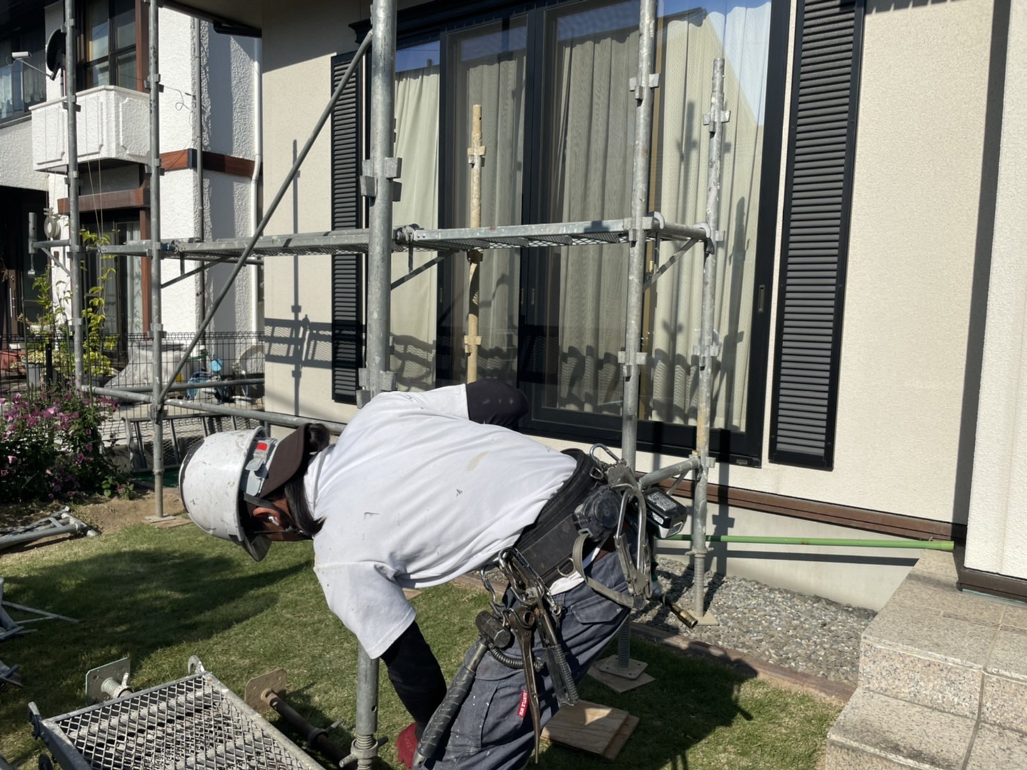 皆さんこんにちわ!山田塗装店のピーちゃんです!!本日は、I様邸にお邪魔しております(^^)/当店の職人が足場を架けて、ようやく工事が始まっていきます!!工事終了が待ち遠しいピヨ~♪
