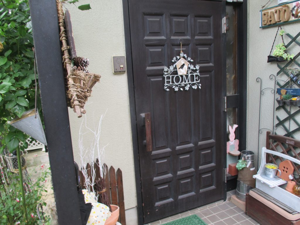 玄関のペンキで塗装してある木柱をタイル調に豪華にしたいと施主様から依頼がありました。