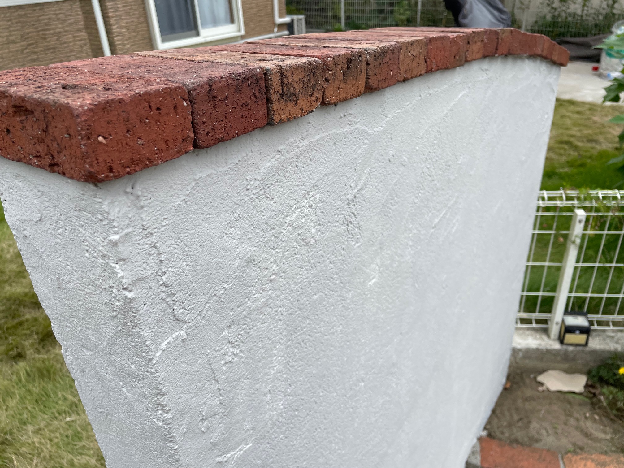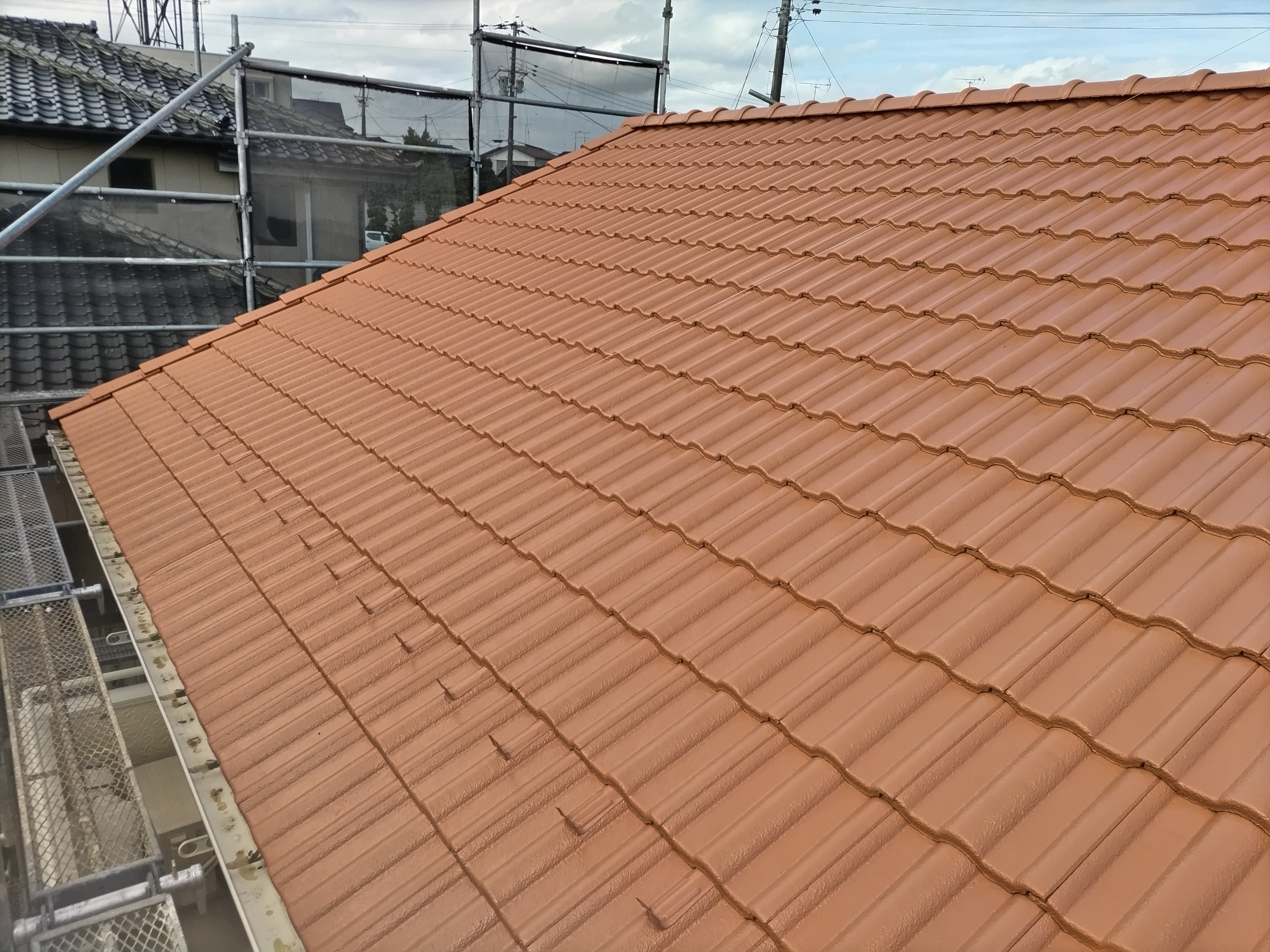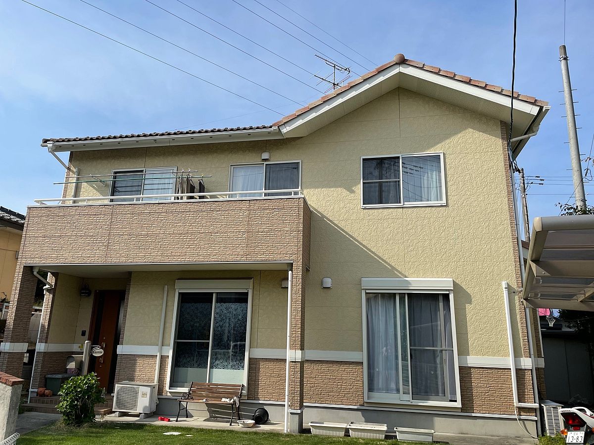 外部塗り替え工事宮城県多賀城市にて施工いたしました!アクセントの外壁は、柄を活かしてクリア塗装にしました屋根のカラーはオレンジ系統にし、幕板や雨樋は白で全体的に明るい洋風なお家へ♪屋根のカラーは特注で、塀と物置も塗装しました!施主様、ならびにご協力してくださった皆様、ありがとうございました!!