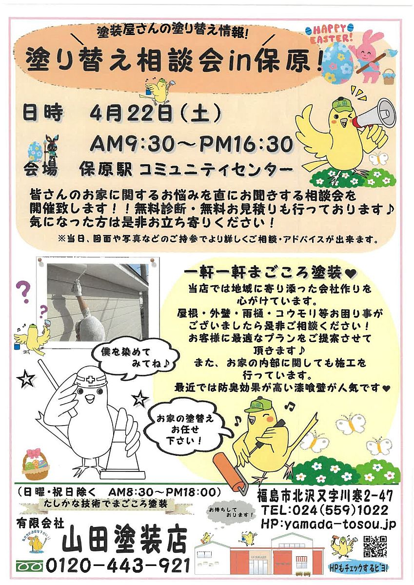 本日は保原相談会ということで!無事終了しました~!ありがとうございました(^○^)本日の相談会ではコウモリ被害に何年も前から悩まれていたお客様が足を運んでくれました!絵本の中に出てくるコウモリさん、、住みつかれてしまうと糞被害が大変です、、、また尿により外壁も汚れてしまいます!!後日お伺いさせて頂いて最善の策をご提案させて頂きます(^_^)/~ありがとうございました♡