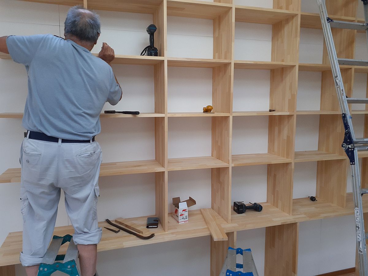みなさんおはようございますーピヨ!人員増加の為、事務所を大幅リニューアルいたしました!!まずはメインの棚を紹介しま~すもともとあった壁を撤去し、棚のスペースを沢山確保しました!以前使用していた棚を作ってくれた大工さんに再び依頼し、作り変わっていく様は圧巻でした(^o^)/次回は色付け作業を紹介しま~す(^○^)